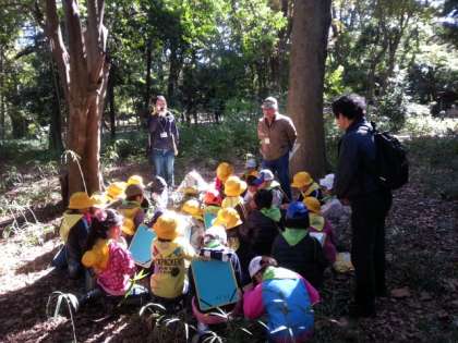 城南環境学習支援グループの皆さんのご指導をいただきながら、自然体験ゲームを楽しみました。葉っぱの香りや森の音などを感じとりながら、たくさんの秋をみつけました。