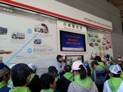 午前中は、川崎の自動車工場で、トラックの組み立てラインを見学しました。トラックの製造工程についての詳しい解説をいただきました。工場の方から、誇りをもって働くことの大切さについても、お話いただきました。
