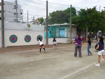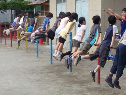 朝運動に、新たな種目が登場し、子どもたちの意欲が高まっています。先日紹介した体育館での二種目に加え、校庭でも輪、的当て、鉄棒などの固定施設を使った運動など、多様な運動に取り組めるようにしました。新しい運動に、子どもたちは、力一杯に取り組んでいます。