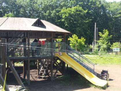 今日は好天に恵まれ、朝の涼しいうちにアスレチックで遊びました。パンプキン号に乗って、高尾の森を後にし、京王レールランドに向かいます。