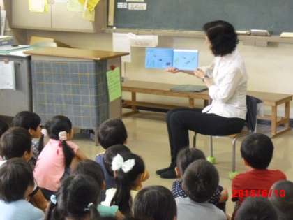 今日は、公開の中で、地域の方のボランティアサークルによる1年生へのお話会もありました。