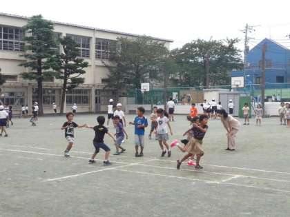 運動会の準備に向けて、教員が校庭のトラックにラインを引きました。それを見た子どもたちが、一人、また一人と、トラックを走りはじめました。やがて、その子どもたちが集まって、リレーが始まりました。翌日は、担任も一緒に校庭に行き、リレー遊びをする子どもたちを応援していました。運動会に向けて、子どもたちが走りはじめました。
