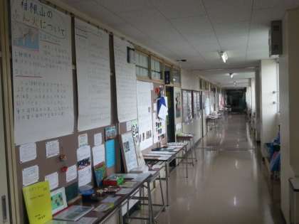 各教室の前に、子どもたちの夏休みの自由研究や工作などの作品を展示しています。クラスごとに、一人ひとりが工夫したことや苦心したことなどを発表し合った後に、展示しています。どの作品からも、夏休みの思い出が伝わってきます。