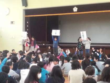 健康について、楽しみながら考える集会を、保健委員会の児童を中心に行いました。分かりやすい出題方法が工夫されていて、低学年から高学年まで、みんなで楽しむことができました。