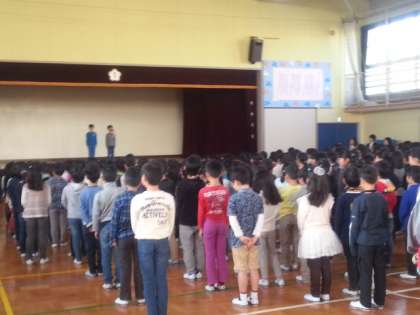 第3学期がはじまりました。新年に自分が立てた目標の達成に向かって頑張る人。そして、頑張る人に惜しみない応援の声がかけられる人になってほしい。校長先生からの話の後は、2年生の代表児童が、今年の目標や3学期のめあてを発表しました。頼もしく、堂々と発表する姿に、たくさんの拍手がおくられました。