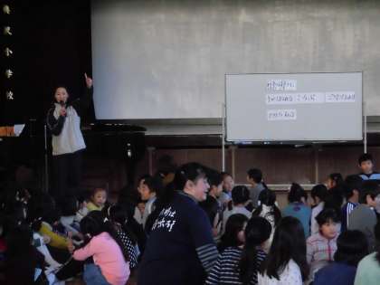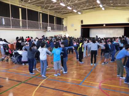 今朝の音楽朝会は、日本の伝承遊び「なべなべそこぬけ」を行いました。輪になって手をつなぎ、「〽底が抜けたらかえりましょう」の歌詞に合わせて手を離さずに反対(輪の外)側を向きます。二人から始めましたが、大人数になるほど難しく、最後は全員で成功して盛り上がっているクラスもありました。低学年から高学年まで、クラスやグループで和気あいあいと仲間と協力して取り組む姿がとても微笑ましく感じられました。