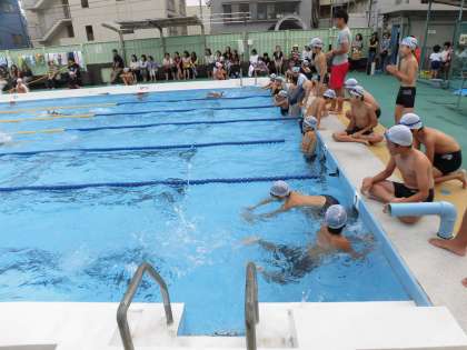 6年生は、小学校生活で培った水泳学習の成果がどれだけ発揮できるか。5年生は、高学年になり1回目の記録会。ここまで学んできた自分の成果を知り、また来年度にもつなげられるように。
