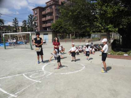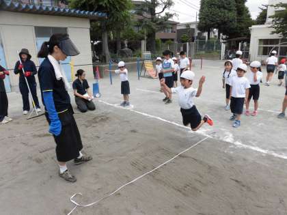 6年生の励ましで1年生も初めての体力テストを頑張りました。