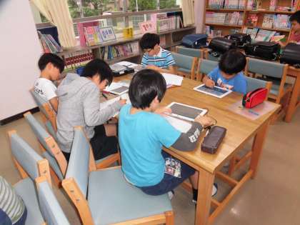 研究クラブは、自分の興味のある事柄について、タブレット等を使用して調べていくクラブです。昆虫、歴史上の人物、病気など調べている事柄は様々です。どんな「研究」になるか楽しみです。