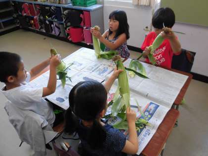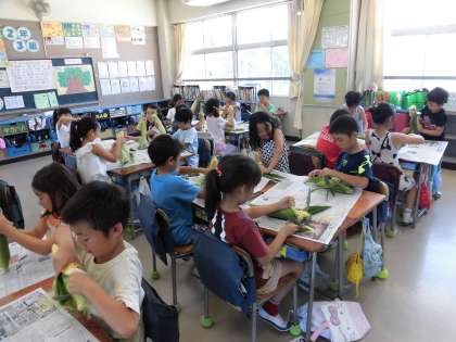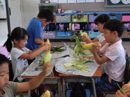 今日の給食のとうもろこしは、2年生の児童が皮むきをしてくれました。