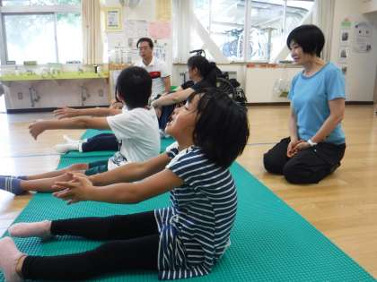 補助具の使用や介助の仕方など、少しの工夫で、子どもたちの姿勢や取り組みやすさが向上しました。日々、一生懸命に身体の取り組みをがんばっている子どもたちをよりよく支えるために、支援者、介助者にとっても勉強になる、たくさんの知見をいただきました。つくし学級を支えてくださるたくさんの方々に感謝です。