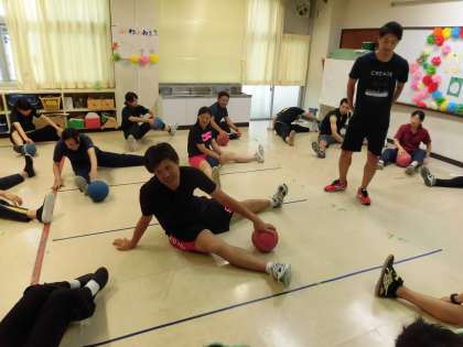また2人で、ボールを同時に投げることやドリブルしながら足し算をするなど、楽しみながら運動に親しみました。