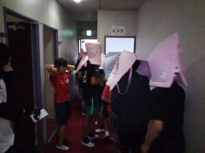 ついてすぐに避難訓練を行い、避難口の確認をしました。