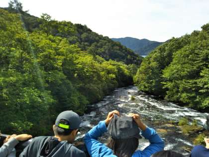 竜頭の滝上から素敵な景色を見ています。暑さも吹き飛んでいきそうです。