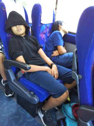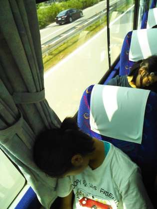 出発してから30分。すでにぐっすり眠ってる子もいます。まだ元気で起きてる子は、歌を歌ったりおしゃべりしています。