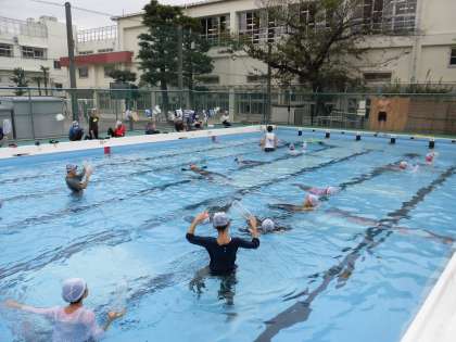 6年生の子供たちは、いつもの水泳指導とは違い、服を着ると動きにくくなると、着衣泳の感想を話していました。