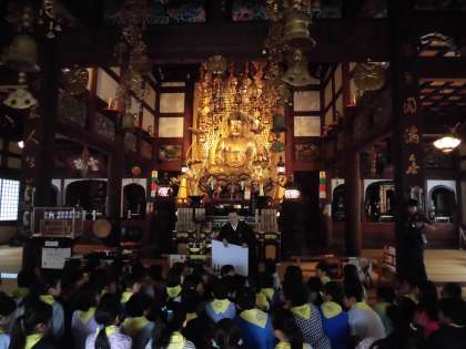 世田谷区のまちの様子や交通の様子をバスの中から見学し、九品仏浄真寺、次大夫堀公園民家園、世田谷市場の3か所に行きました。
