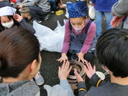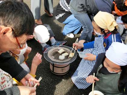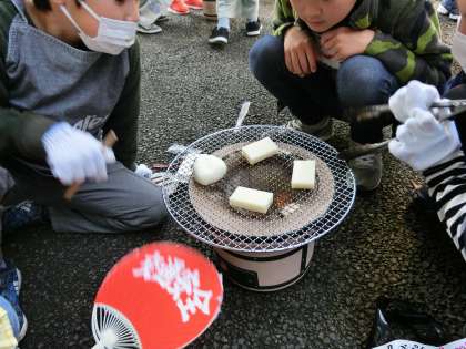 自分たちで点けた火で焼いたおもちはとても美味しかったです