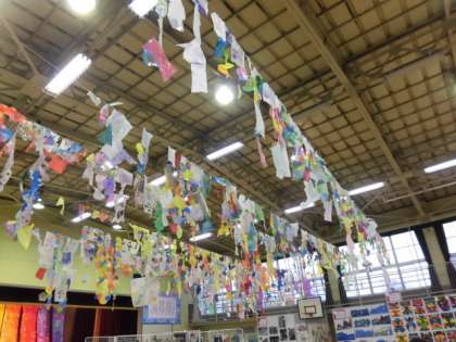 素敵なカーテンが体育館の天井を彩りました。