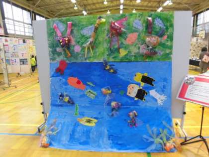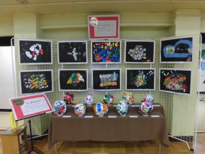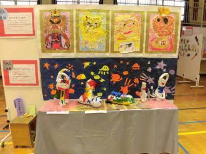 体育館の入り口で2学級の作品が、皆様を楽しませてくれました。