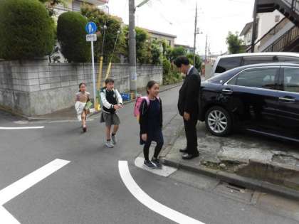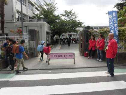 保護者の方、地域の皆様が街角に立ち子供たちに挨拶をしてくれました。