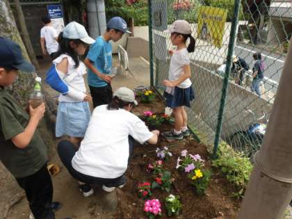 3年生が東玉川公園で花植えを行いました。地域の方々、保護者の方々にもご協力いただき、花を植えることができました。住んでいる町を自分たちの手できれいにできることは素晴らしいですね。