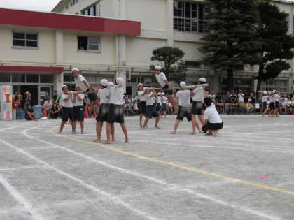 「For The future」と題して、高学年は棒体操の演技をしました。協力し乱れぬ演技は、参観した方々を感動させました。