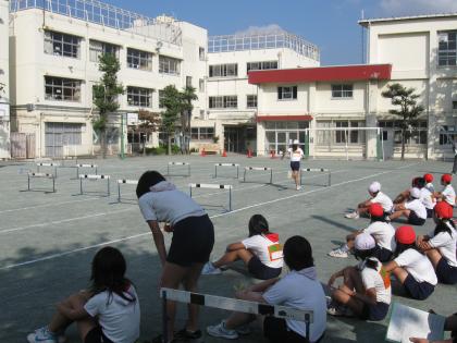 〈10月15日(水)〉校内研究会で、6年2組の来山 憲学級の研究授業が行われました。陸上運動“ハードル走”の授業でしたが、子どもたちが自分のめあてに向かって、一生懸命取り組んだ授業でした。中でも互いのめあてをしっかり意識し、教え合っている姿は高学年らしさを感じました。
