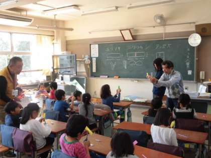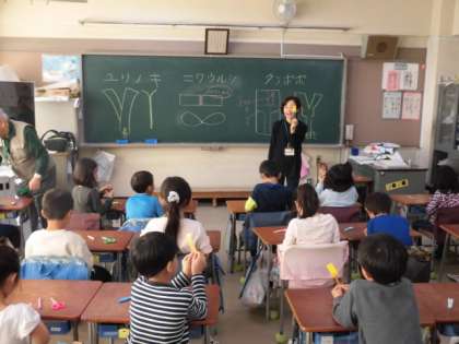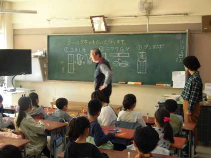 国語で学習する「たねのたび」に関連して、地域の皆様に講師として来ていただき、いろいろな種を折り紙で作りました。