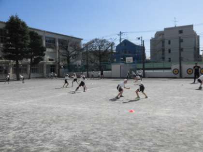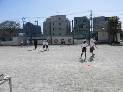 本日、TOPリーグの選手に来ていただき、3年生の児童がタグラグビーを教えていただきました。