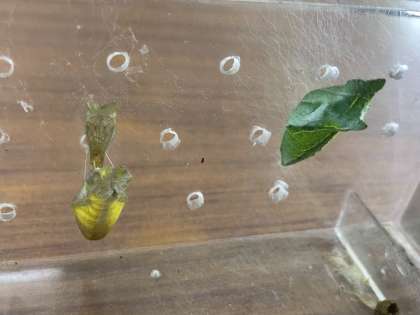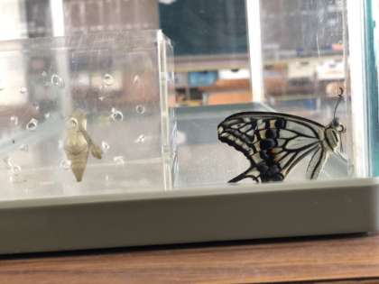 何匹もがサナギになり、今日も一匹美しいチョウになりました。