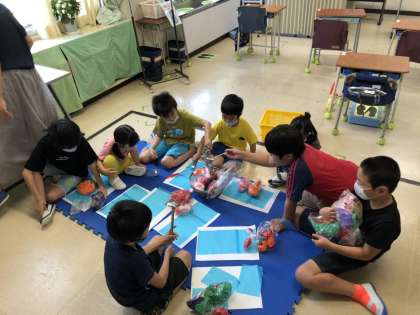 あっという間に、わかば学級の中に涼しげな金魚の池ができました。