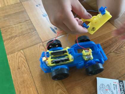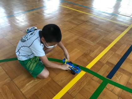 理科では、電気のはたらきについて学習しています。より速いモーターカーを作ろうという課題に対して、電池のつなぎ方を変えてみたり、電池の数を増やしてみたりと、試行錯誤を繰り返していました。夢中になって学習する姿を見ていると、うれしい気持ちになりますね。