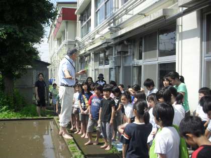 本日、1・2校時に学校運営委員の福田さんのご指導のもと、5年生全員で田植えを行いました。地域の民生児童委員、保護者の方に来ていただき、予定より早く田植えを終えることができました。秋の収穫が今から楽しみです。これから、水の管理、雑草取り等の仕事を通して稲を大事に育ててほしいと思います。秋には、稲刈り、収穫祭等の行事があります。
