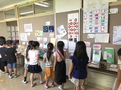 上級生の作品も見に行きました。お気に入りや、来年やってみたい作品が見つかったようです。