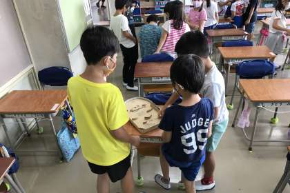 クラスで、作品を友達に紹介しました。どの作品にも自分の好きなことや夏休みの思い出が表れていて、皆、楽しく発表を聞いていました。