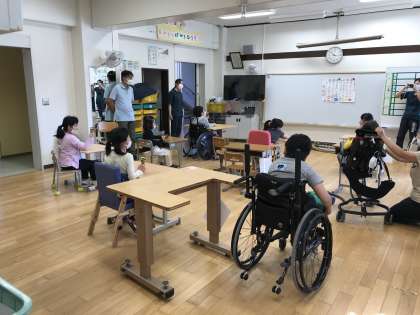 つくし学級の音楽の様子です。ハンドベルで、「どれみのうた」の演奏を楽しみました。