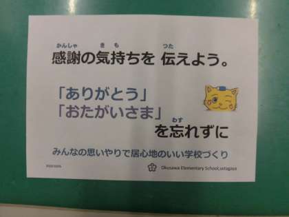 感謝の気持ち「ありがとう」を伝え、「おたがいさま」を忘れずに過ごし、居心地の良い学校にしていきましょう。