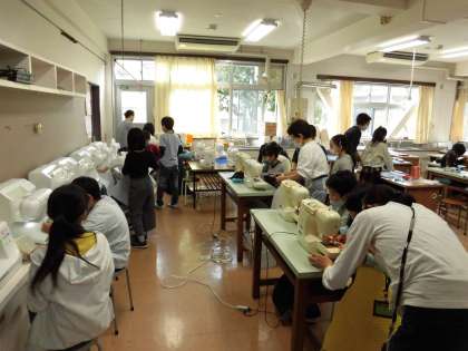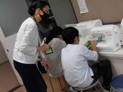 5年生は今、家庭科の学習で、ミシンを使ってバッグ作りをしています。たくさんの保護者ボランティアの方に入っていただいて、安全にスムーズに学習を進めることができています。ありがとうございます。自分で装飾を付けて、オリジナルバッグを完成させます。できあがりが楽しみです。