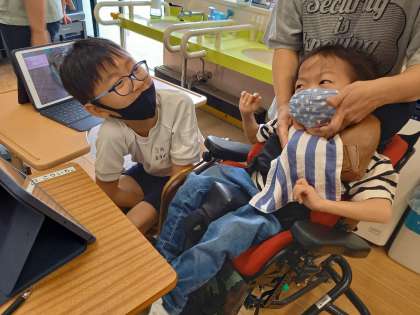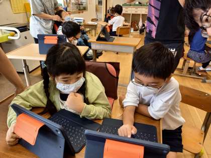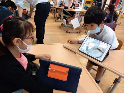 ヤゴの観察をして気づいたことを、つくしとわかばペアになり、伝え合いました。