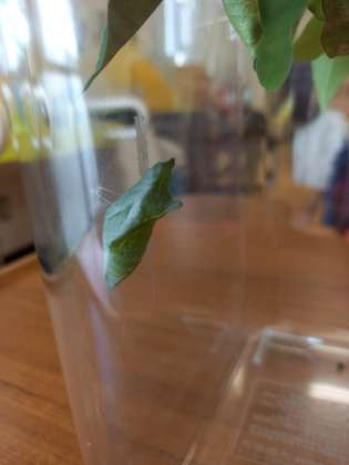 つくし学級で育てているアケバ蝶の幼虫が、さなぎになりました。