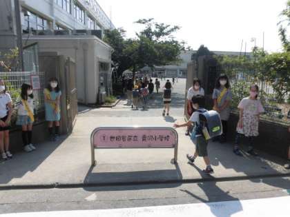 今朝も児童運営委員が校門に立ち、元気にあいさつをしました。
