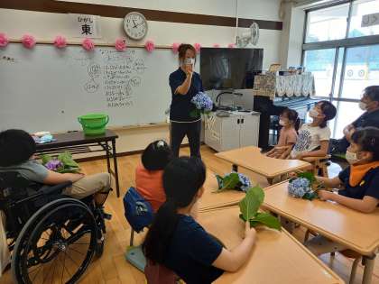 図工の授業では、『紫陽花の花』づくりにチャレンジです。