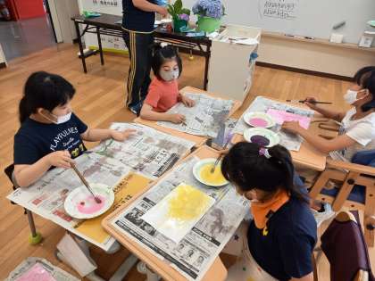 みんな、色を混ぜたり工夫を凝らして好きな色をつくりました。