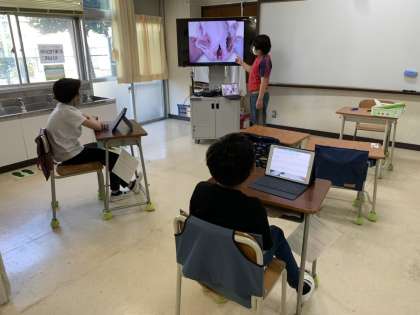 「世界について知ろう」というテーマで、ガーナの生活や文化について知り、日本と同じところや違うところを考えました。その中から、もっと知りたいと思ったところを出し合い、一人ずつ立てた課題に沿って探究しています。今日はその中間報告をしました。友だちの報告を興味津々で聞き入る姿が見られました。