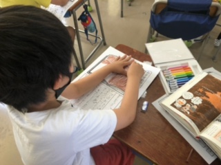 『始め』『中』『終わり』の構成で上手に文を書いたり、丁寧に絵を描いたりすることができました!