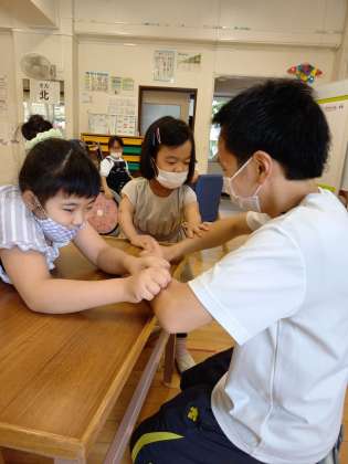 目をつぶって、友達にタッチされたとこを当てながら楽しみました。