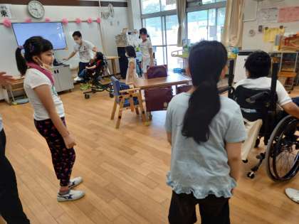最後の運動は、音楽に合わせて自由に動き、音楽が止まったら動きもストップするゲームです。