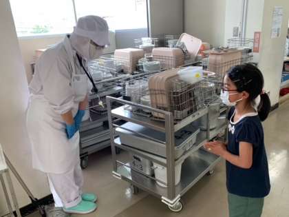 毎日ワゴンを片付けに行くときに、調理師さんに「ごちそうさまでした。」の挨拶をしています。