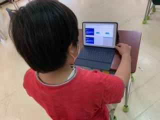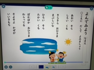 情景が浮かぶように音読する練習をしています。練習前と練習後の自分の音読をロイロノートで録音し、それを友だちと共有して聞き比べました。互いの良くなったところや改善点を伝え合うことで、短時間でもみんなあっという間に上達しました。自分の変容に嬉しそうな表情を浮かべる姿が見られました。